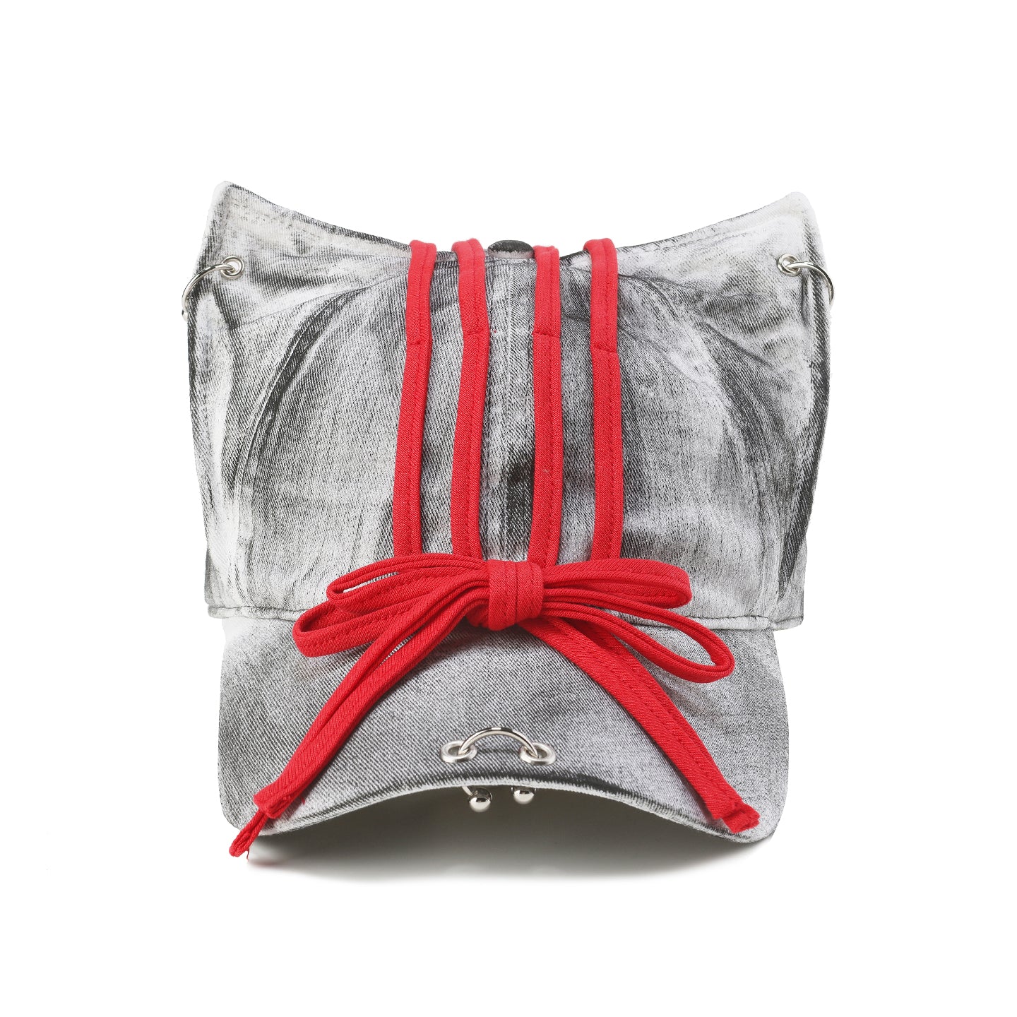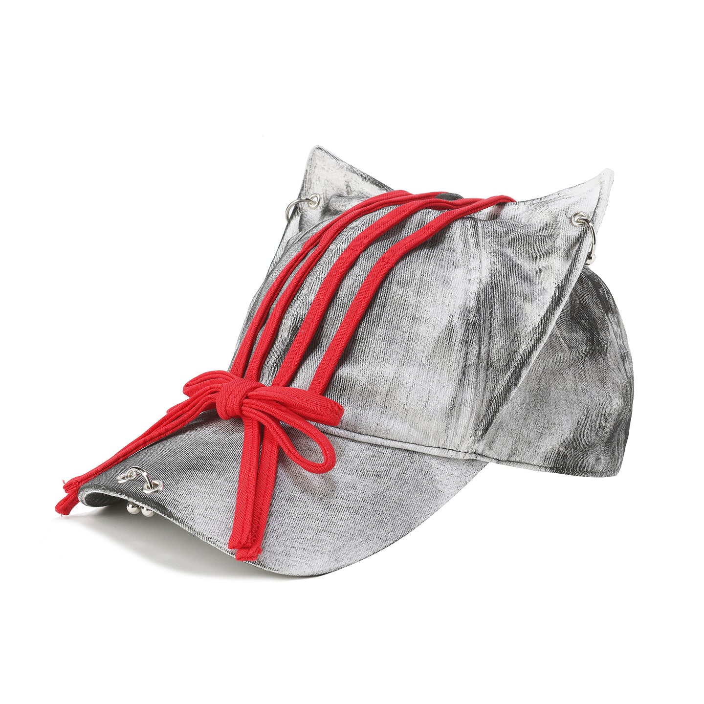 GENZERO Belted bow tie silver-gray cat-ear baseball cap