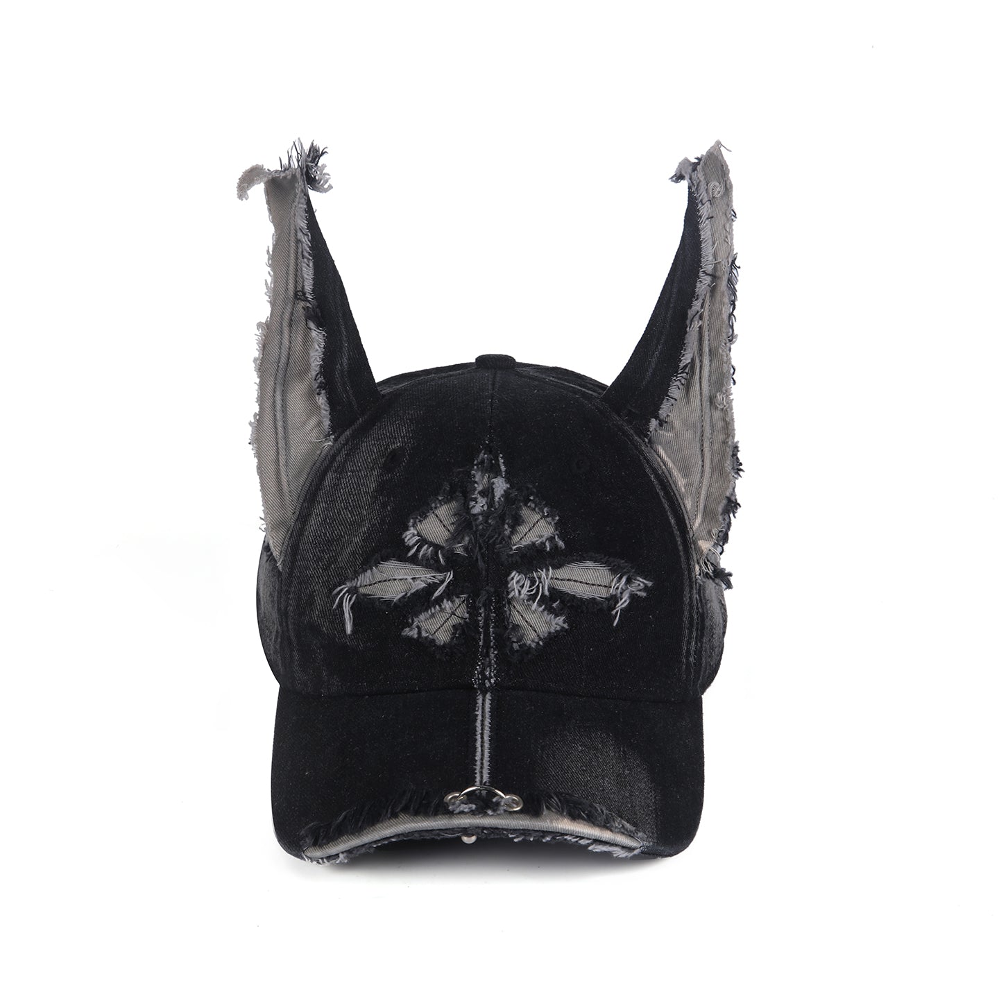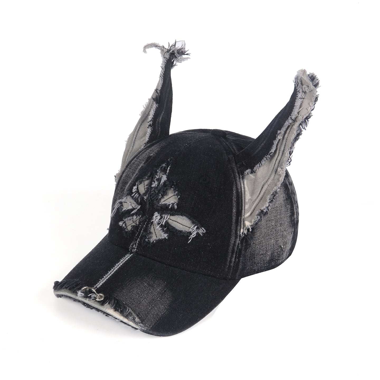 GENZERO Black washed denim dog ears cross-shaped baseball cap