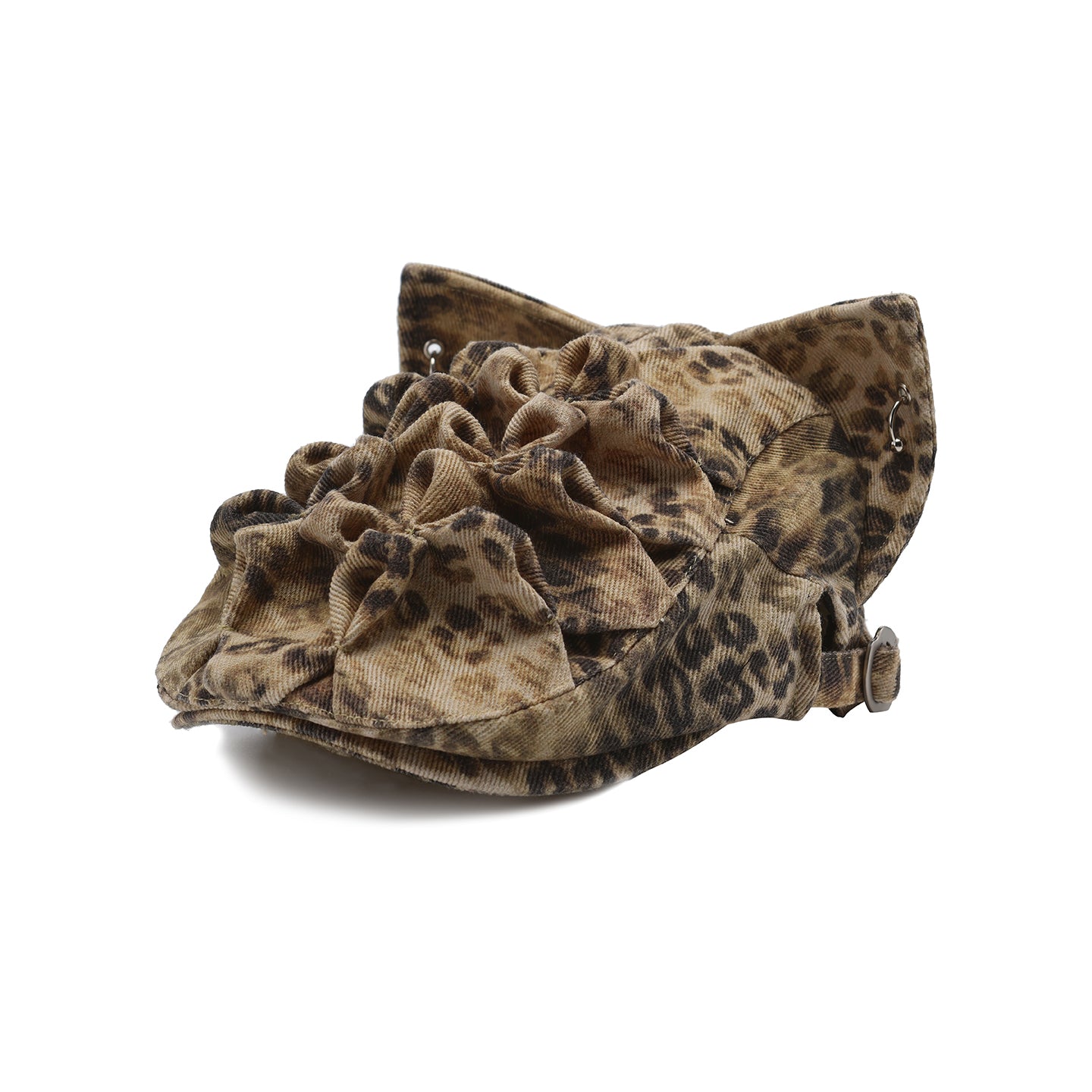 GENZERO Leopard print pleated pinched cat ear front hat