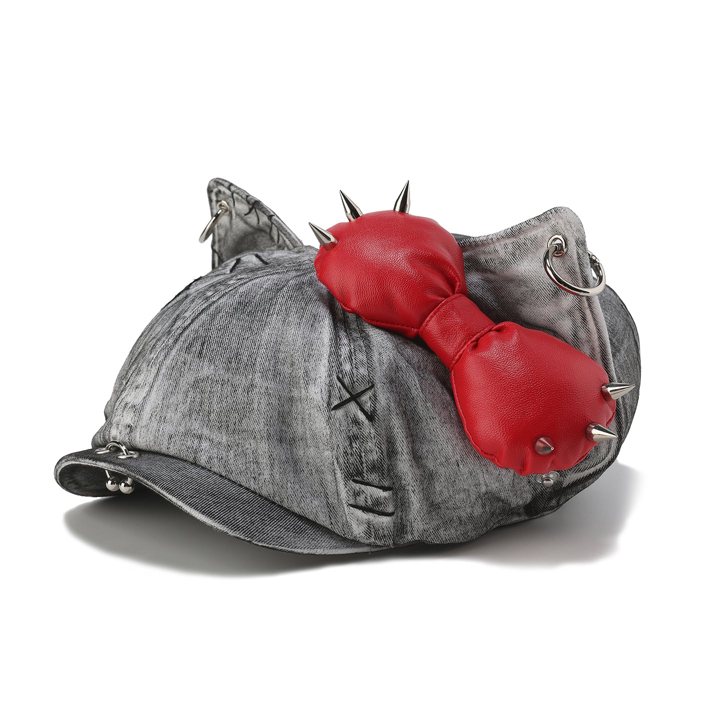 GENZERO Rivet bow silver grey newsboy beret